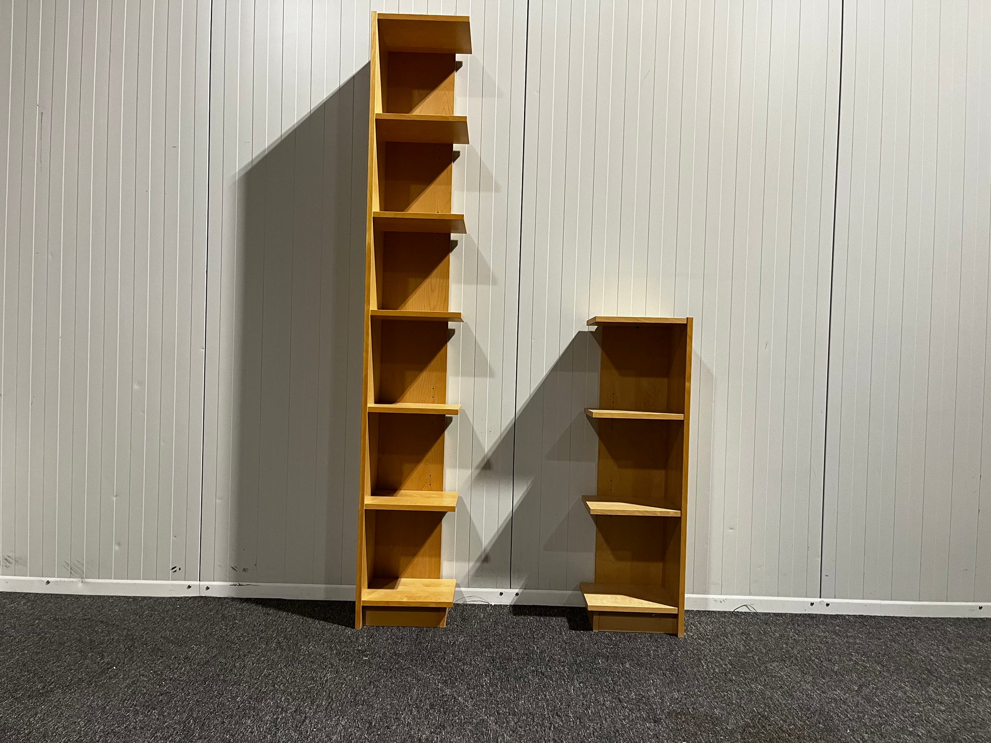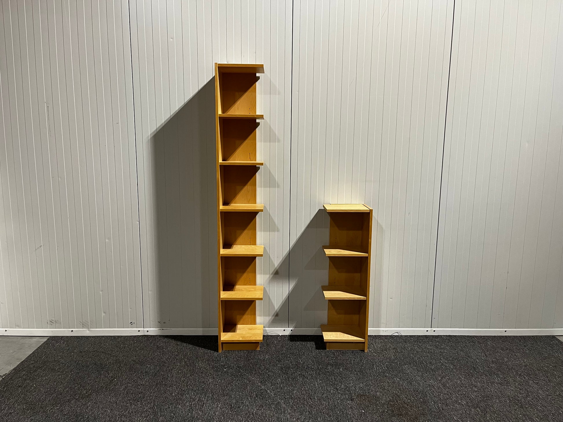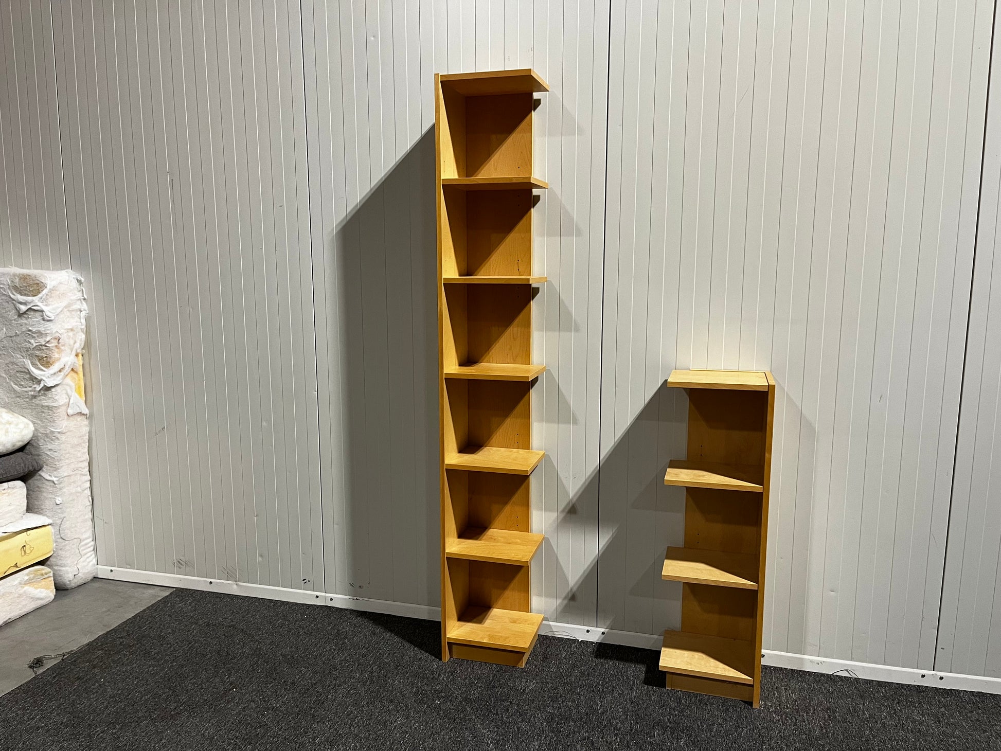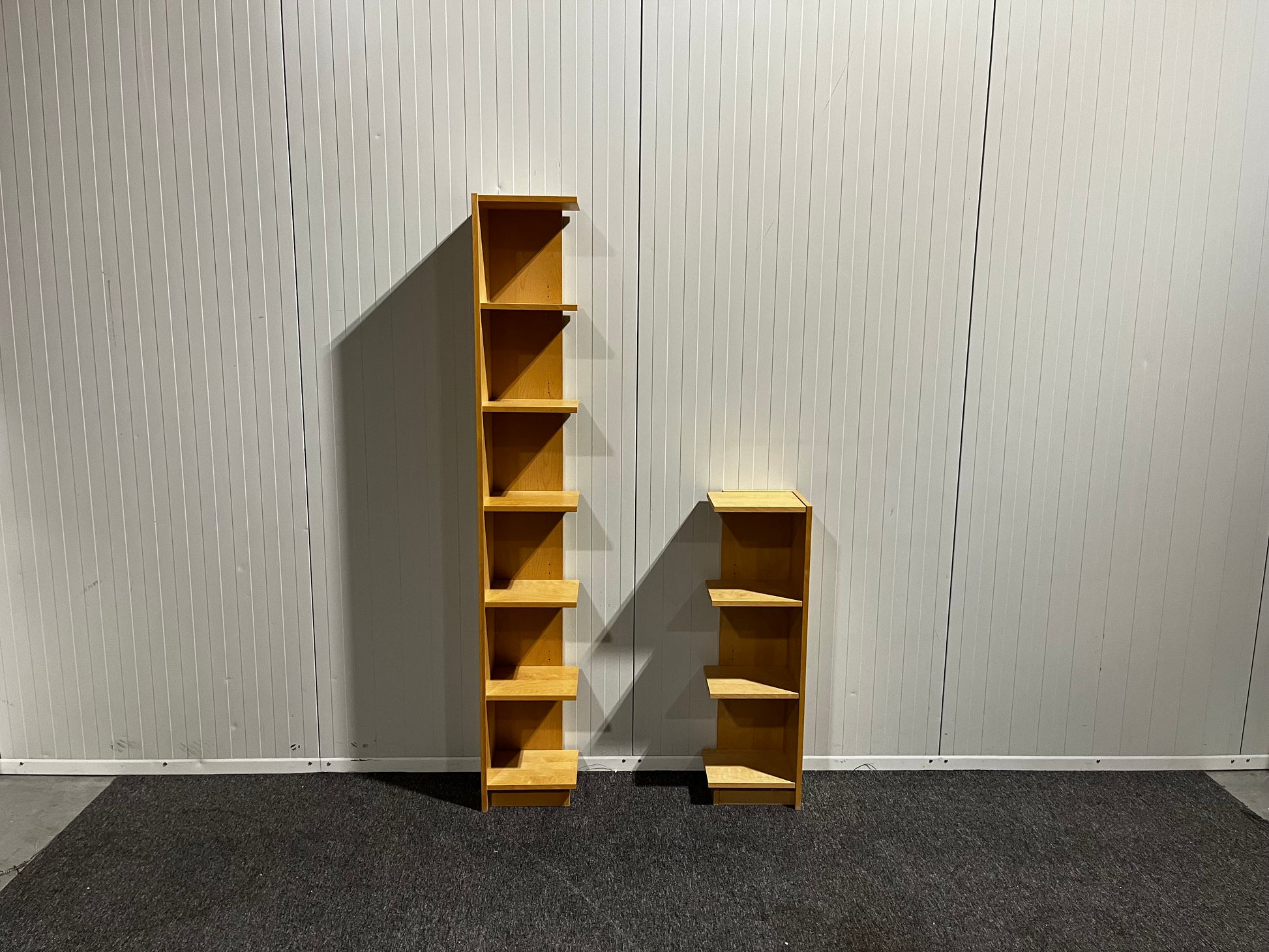 Bokhyllor – en lång och en kort, perfekt för hörnplacering
