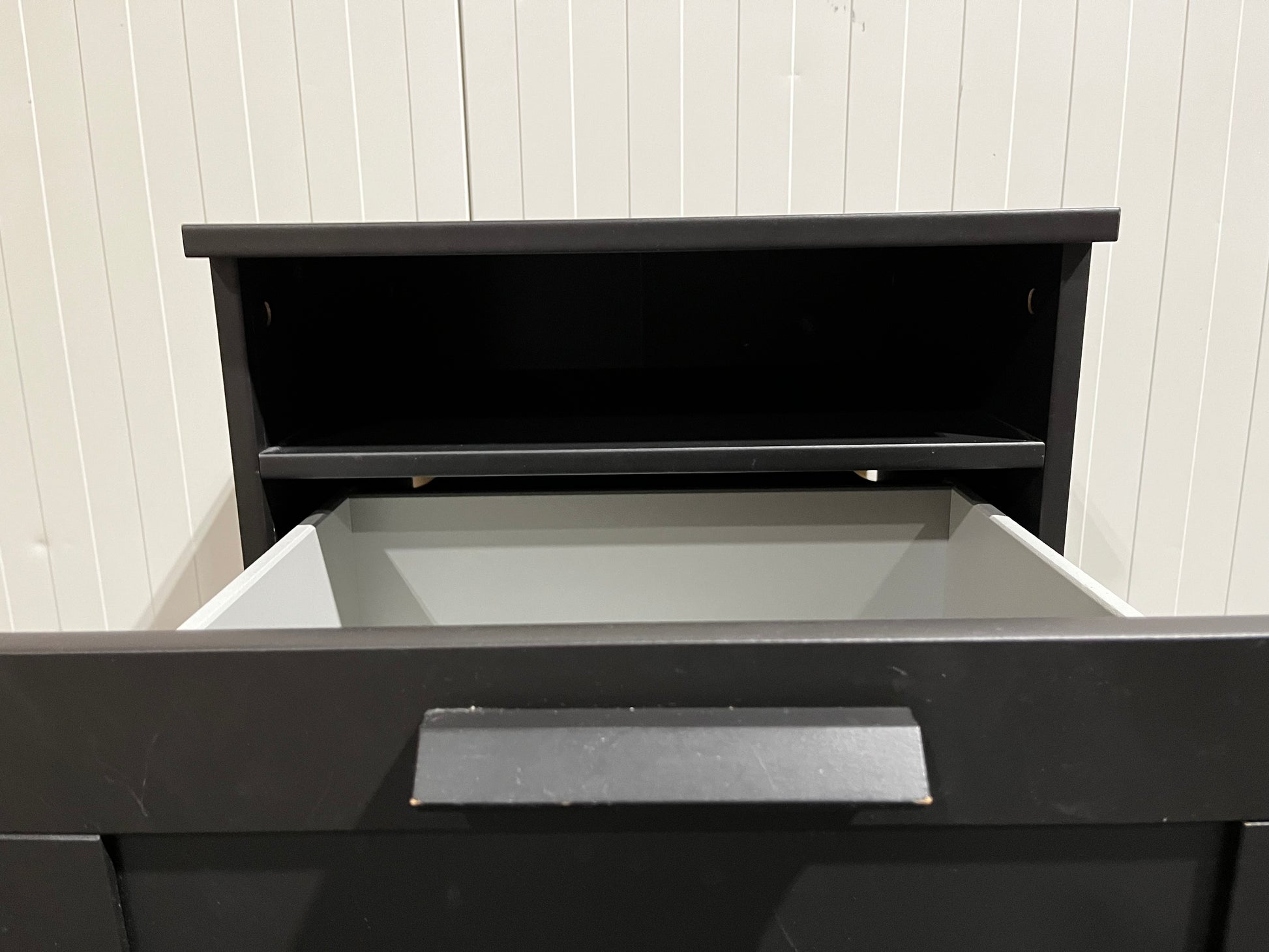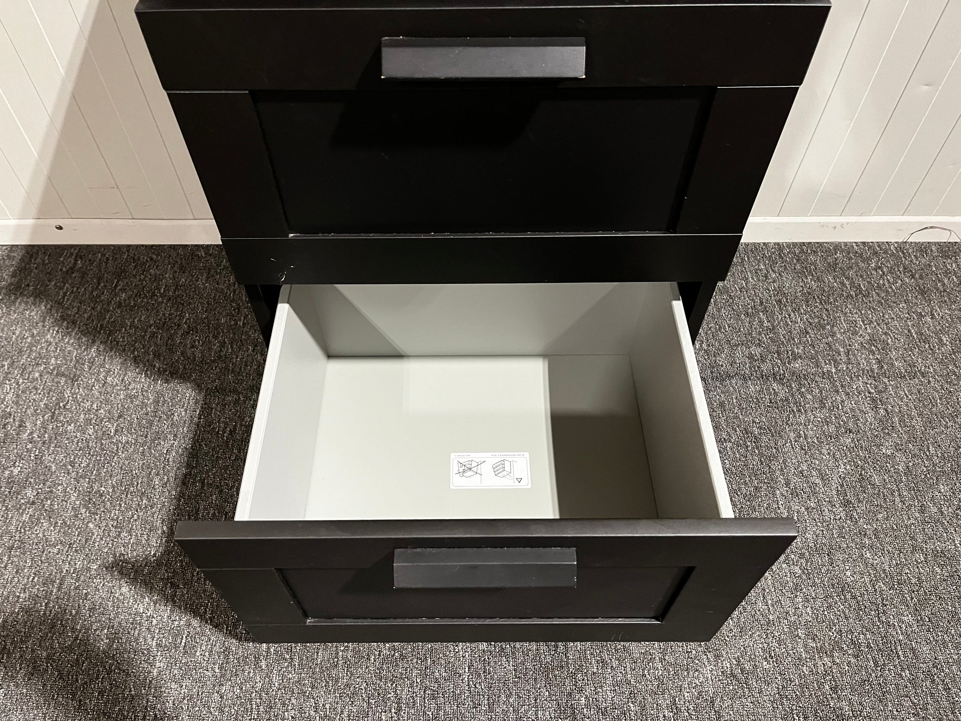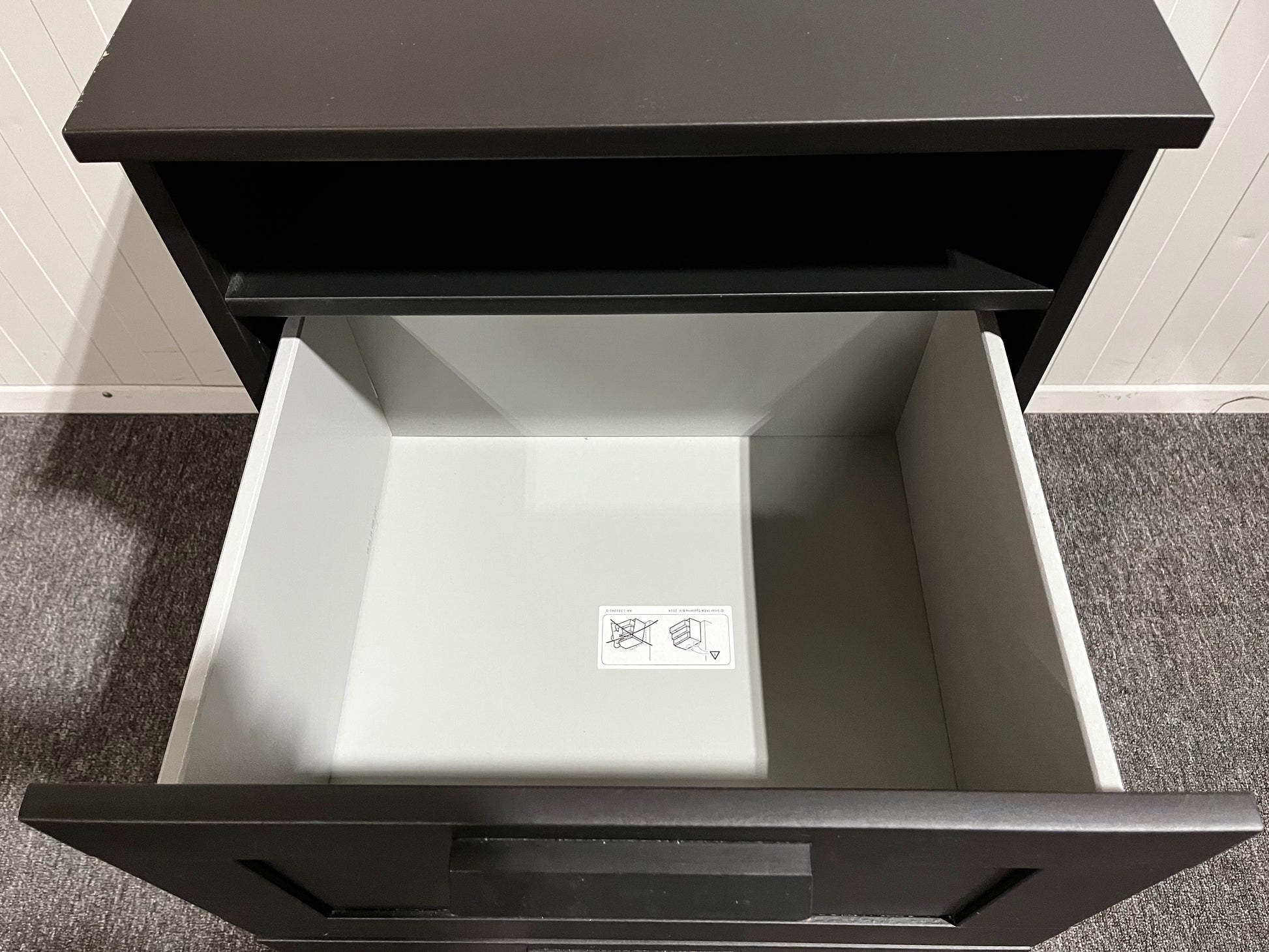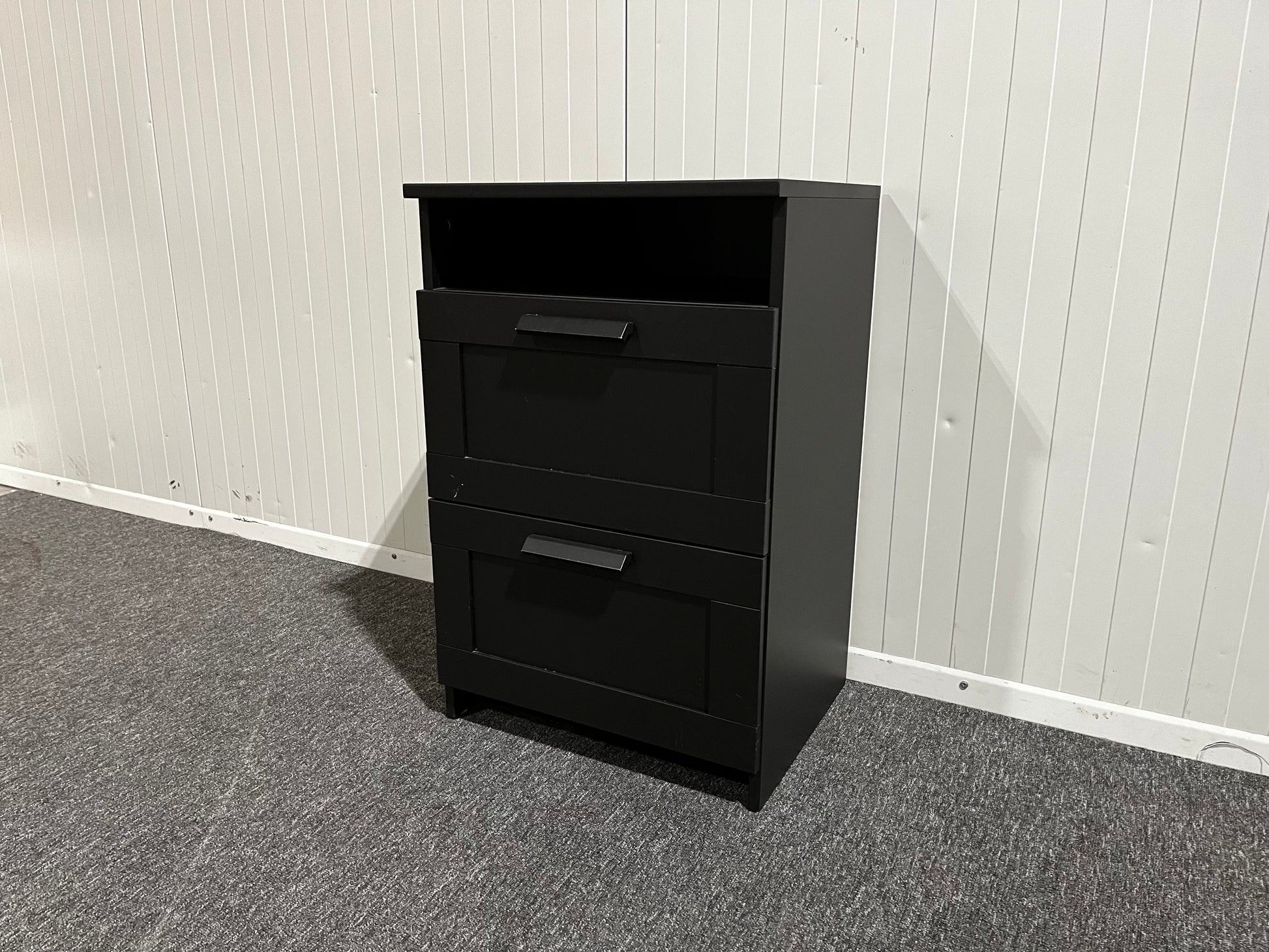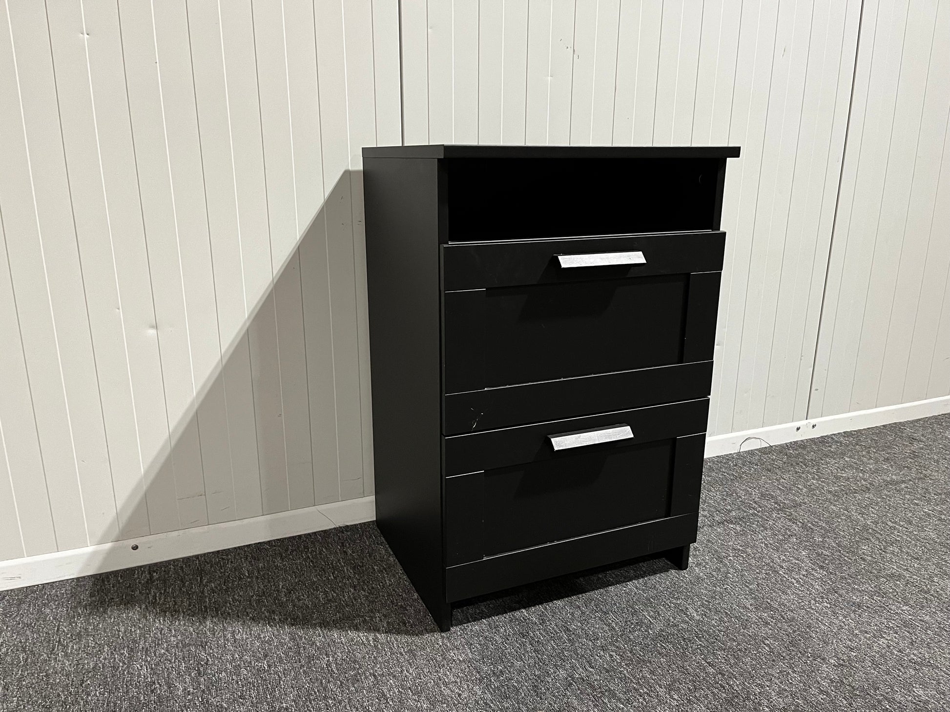 Svart byrå med två lådor
