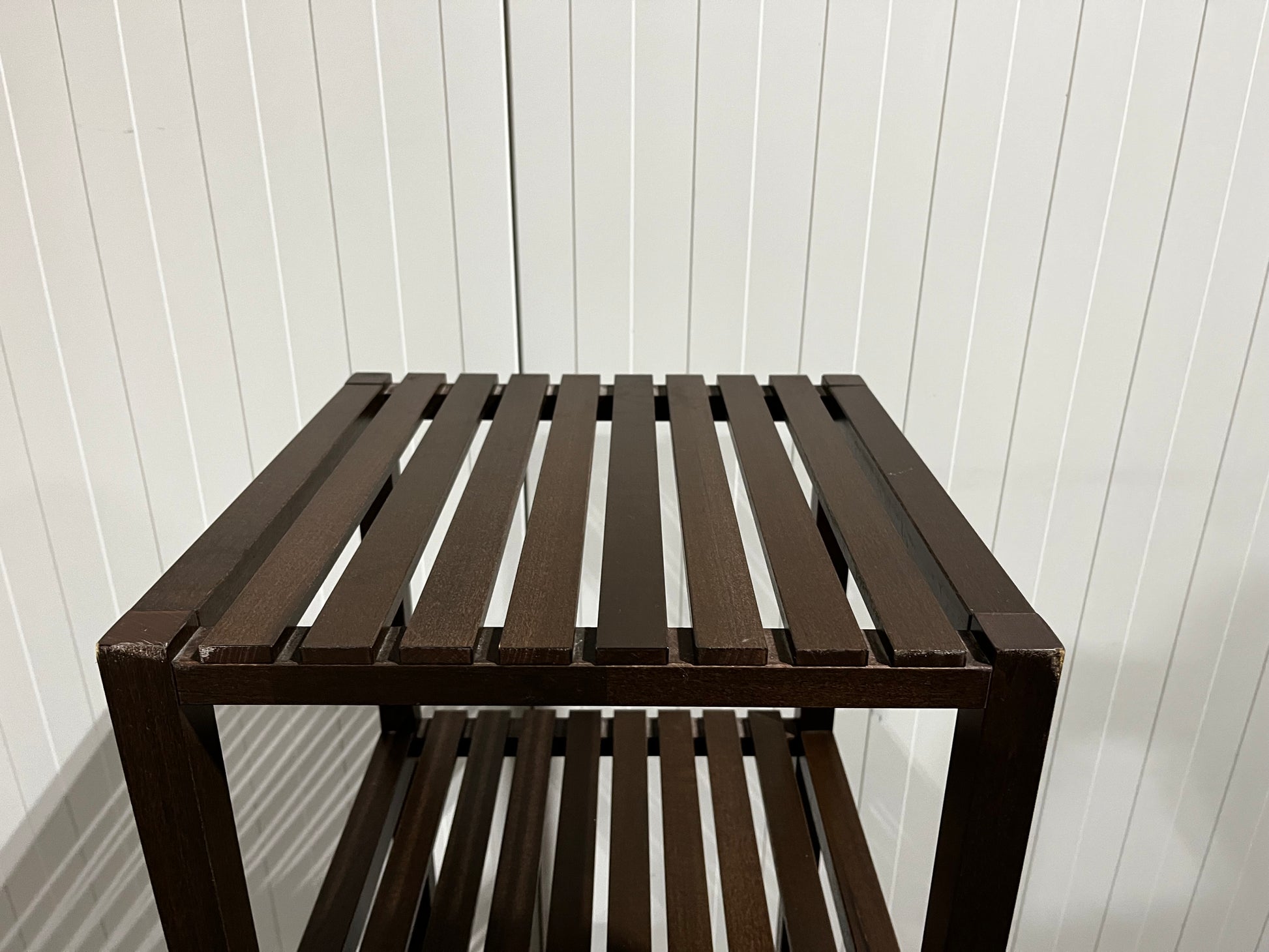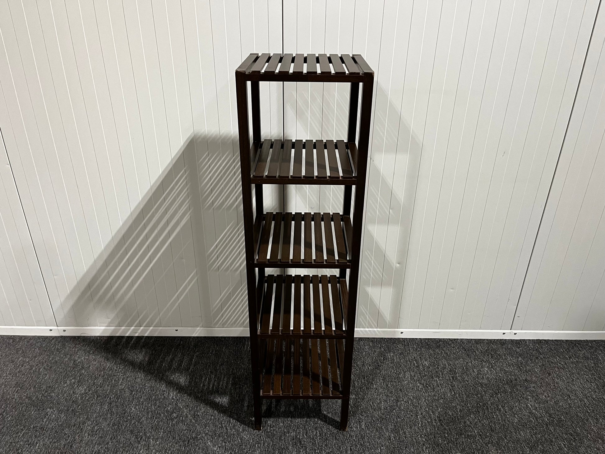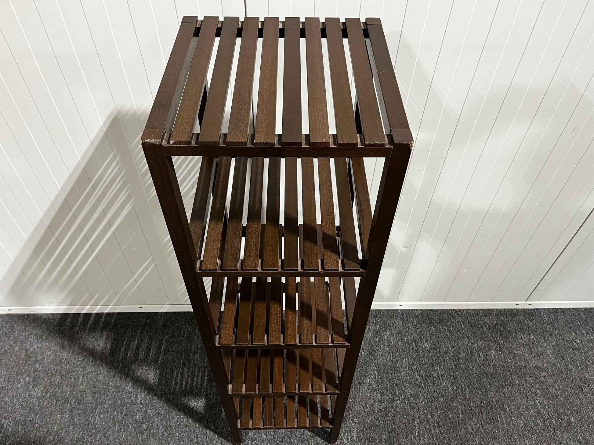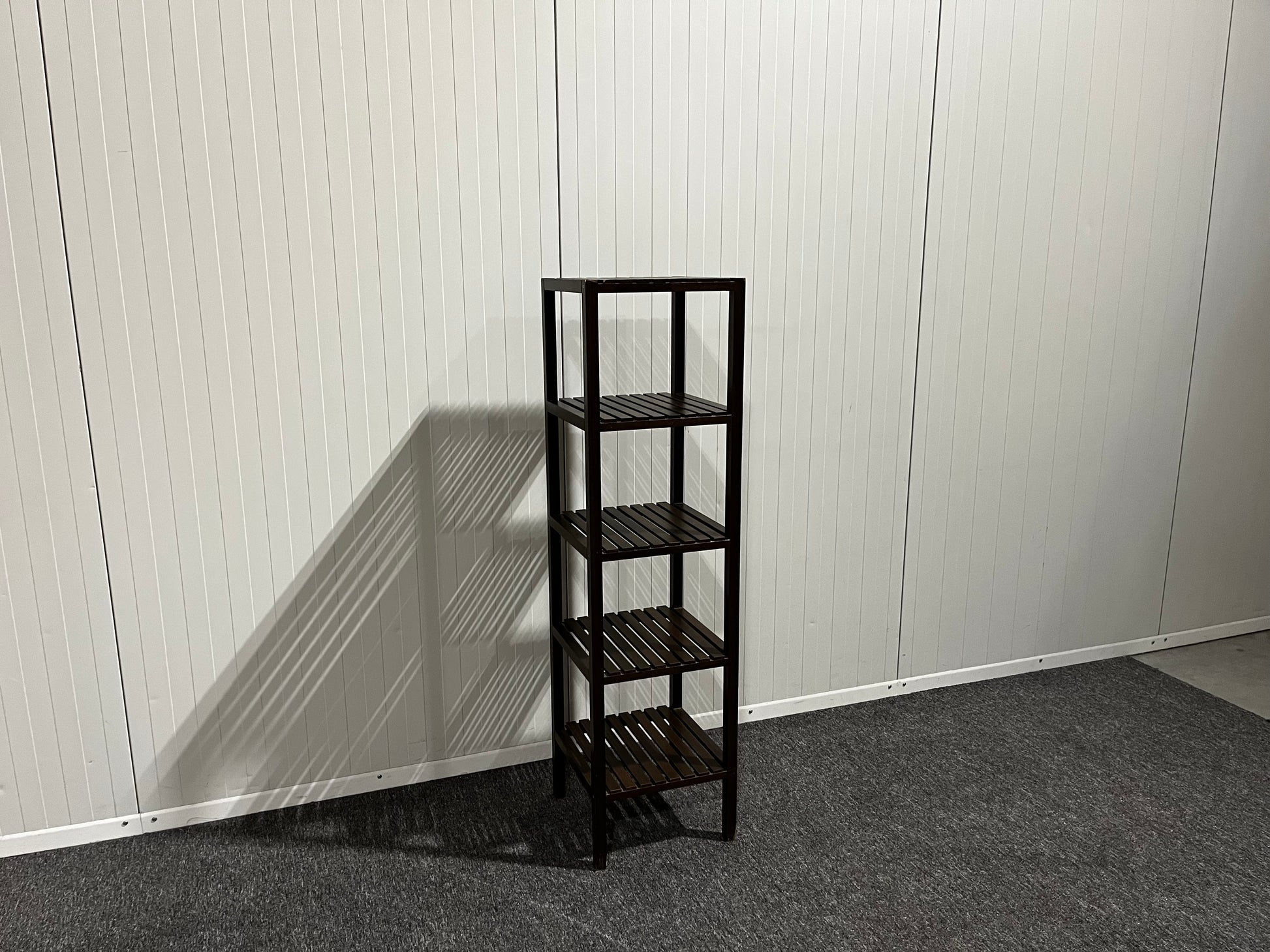 En stilren brun hylla som kombinerar funktion och design på ett elegant sätt. Den smidiga storleken gör den perfekt för både små och stora badrum, och de öppna hyllplanen ger gott om plats för handdukar, produkter och dekoration. Den neutrala färgen gör att den enkelt smälter in i olika inredningsstilar.