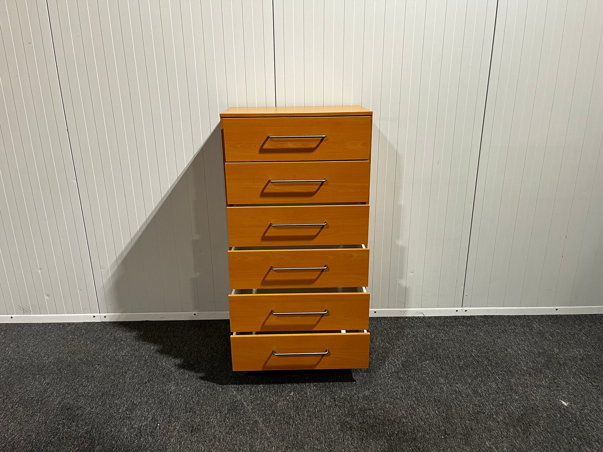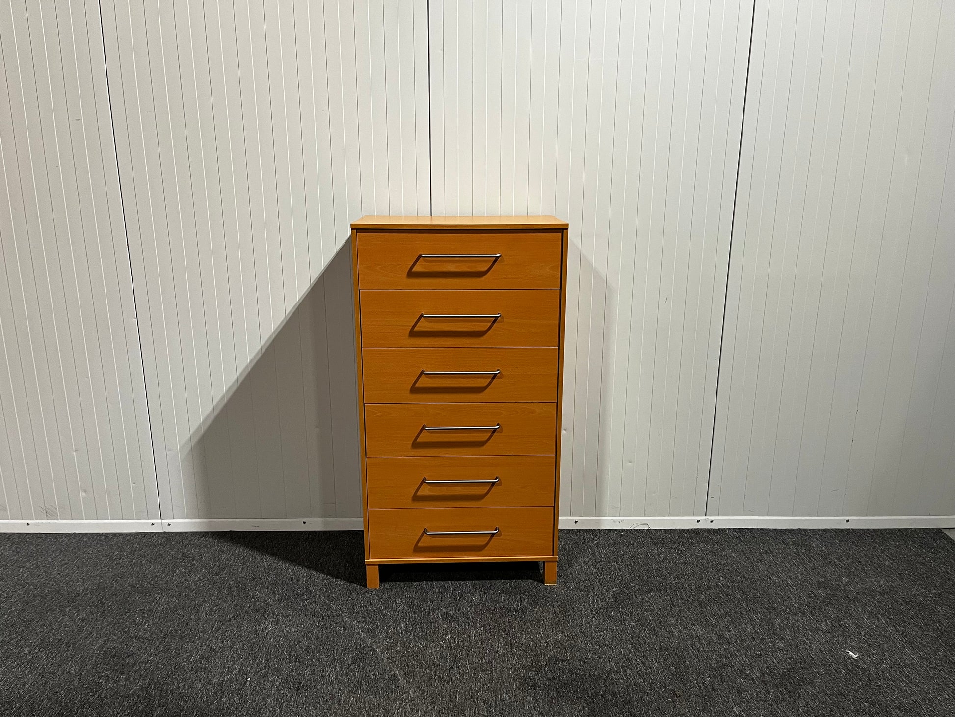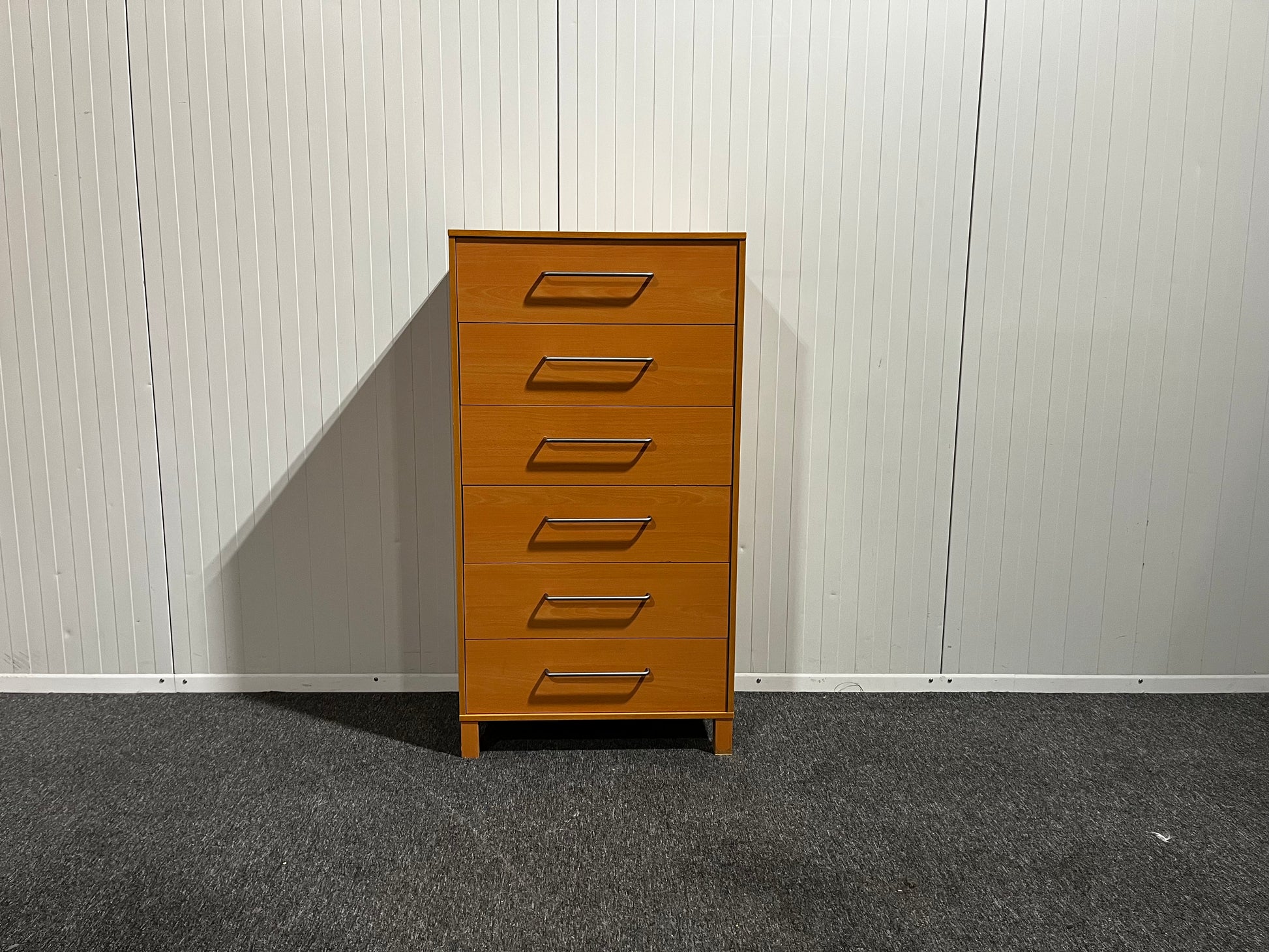 En praktisk och rymlig byrå med sex lådor som erbjuder mycket bra förvaring för kläder, textilier eller andra hushållsprylar. Den stilrena designen gör att den passar bra i sovrum, hall eller vardagsrum och lådorna glider lätt vid användning.