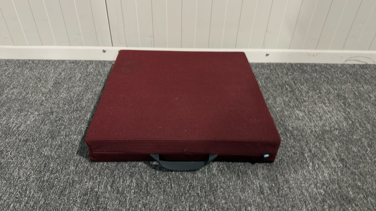 En förhöjd sittdyna i röd färg som ger extra höjd och bättre komfort. Perfekt för pensionärer eller för dig som vill sitta mjukare och komma upp lite högre i soffan eller fåtöljen. Dynan är stabil, bekväm och enkel att flytta mellan olika sittplatser. Rengjord och fräsch med ett välvårdat helhetsintryck.
