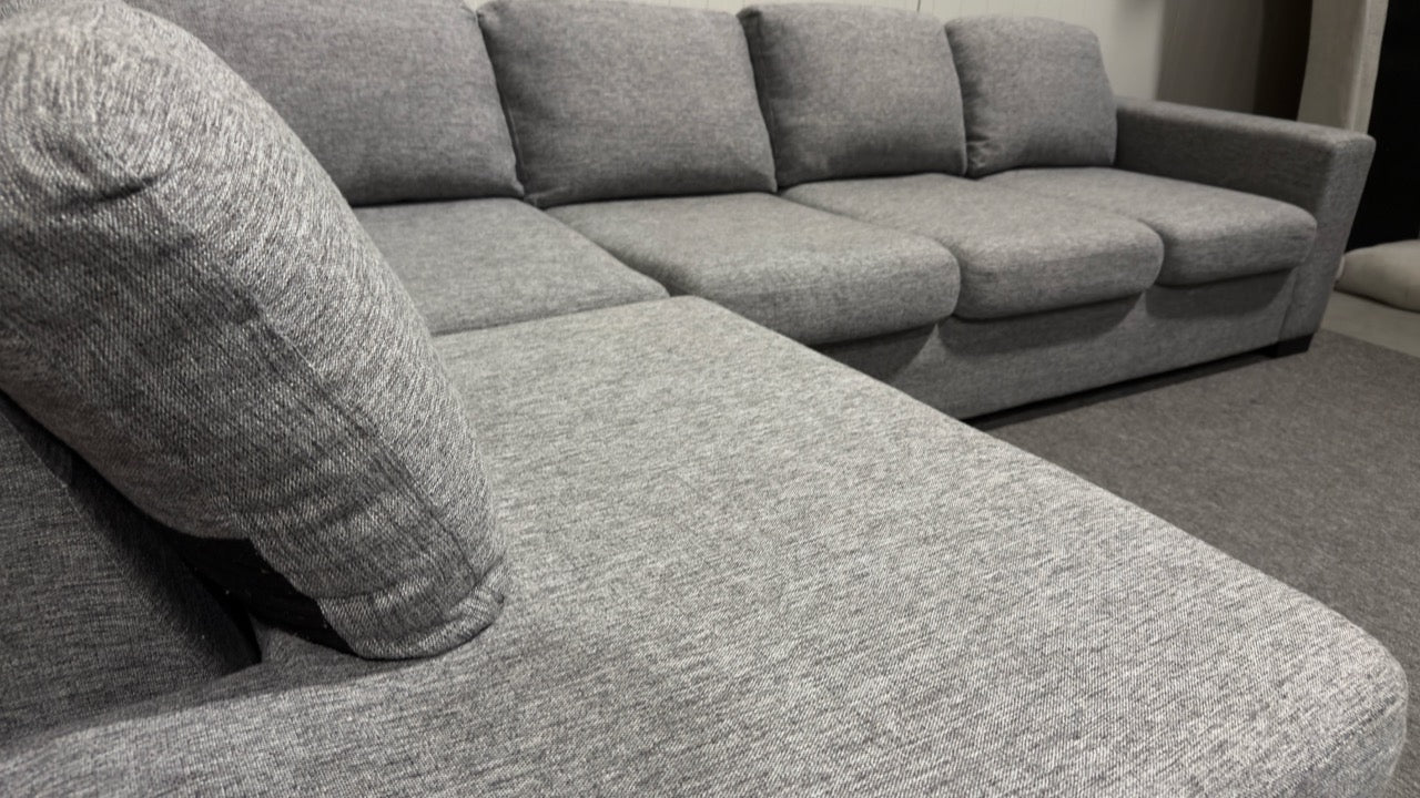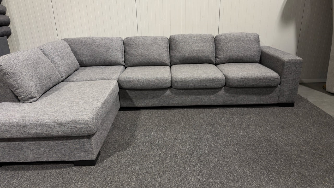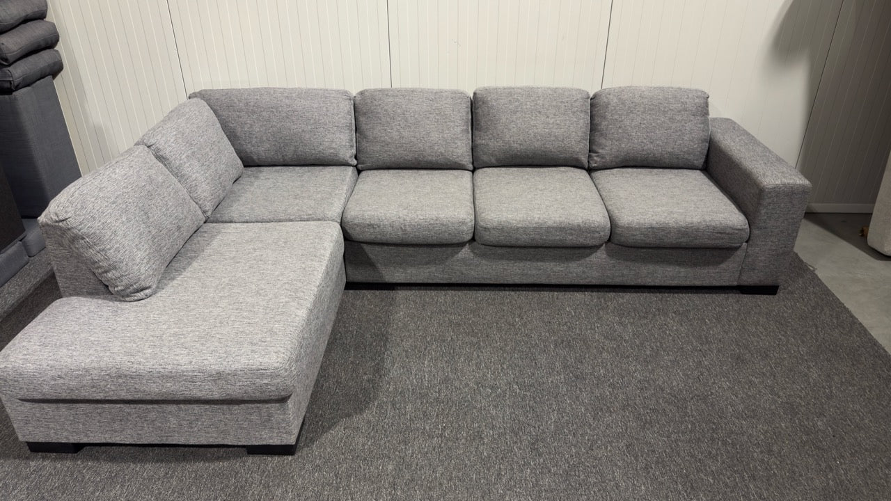 En grå och stilren divansoffa som kombinerar modern design med hög komfort. Den generösa sittytan och den sköna divandelen gör soffan perfekt för både vardagsmys och sociala stunder. Modellen är lätt att placera i olika typer av rum och har en stabil konstruktion som håller över tid.
