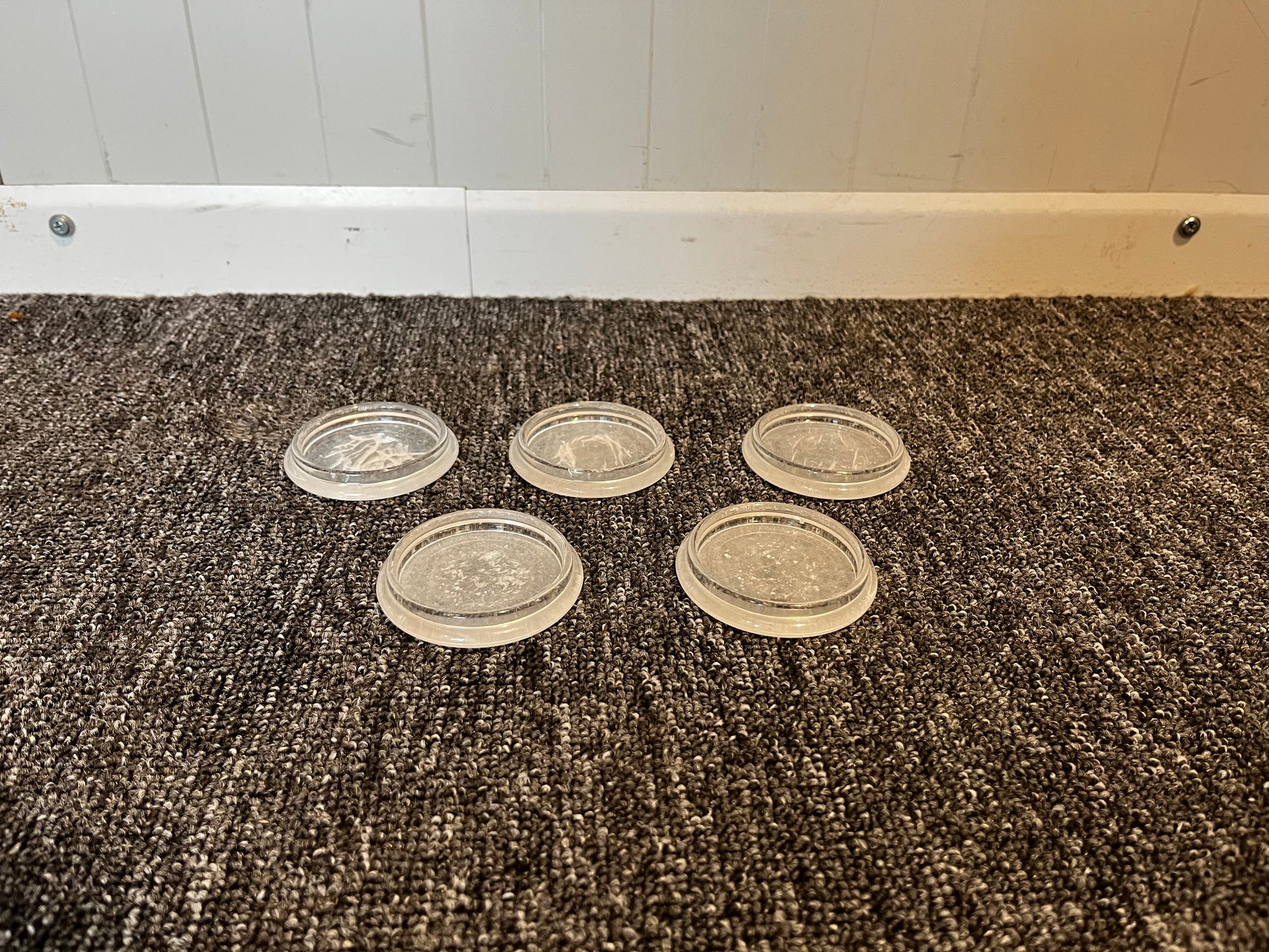 Funktionella möbelunderlägg i tålig plast som skyddar golv mot repor och märken. Perfekta under stolar, bord eller soffben för att minska slitage och ge stabilitet. Den diskreta designen gör dem lätta att kombinera med olika typer av möbler och inredningsstilar. Fem stycken.