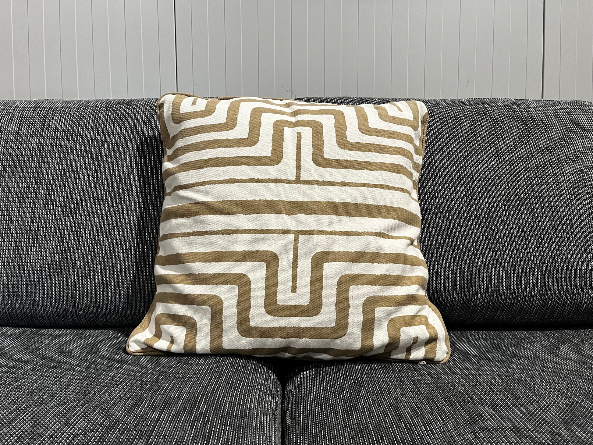 En dekorativ kudde med stilrent mönster i bruna och vita toner. Den klassiska designen gör den lätt att kombinera med både enfärgade textilier och olika inredningsstilar. Perfekt som accent i soffan, på sängen eller i en fåtölj för att skapa ett varmt och ombonat intryck.