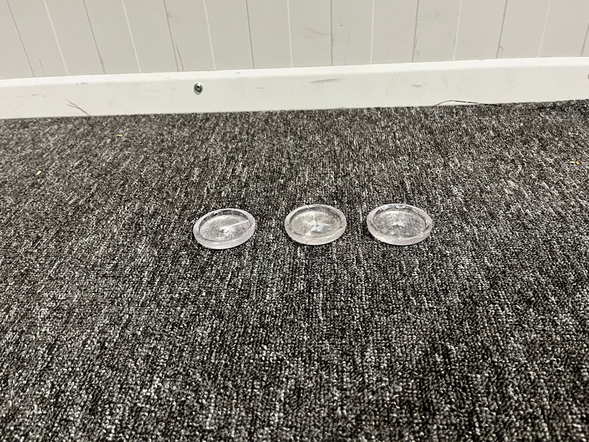 Tre praktiska möbelunderlägg i slitstark plast som skyddar golvet mot repor och märken. Perfekta under stolsben, soffor eller bord för att ge stabilitet och minska slitage. Ett enkelt och effektivt sätt att bevara golvets yta och hålla möblerna på plats.