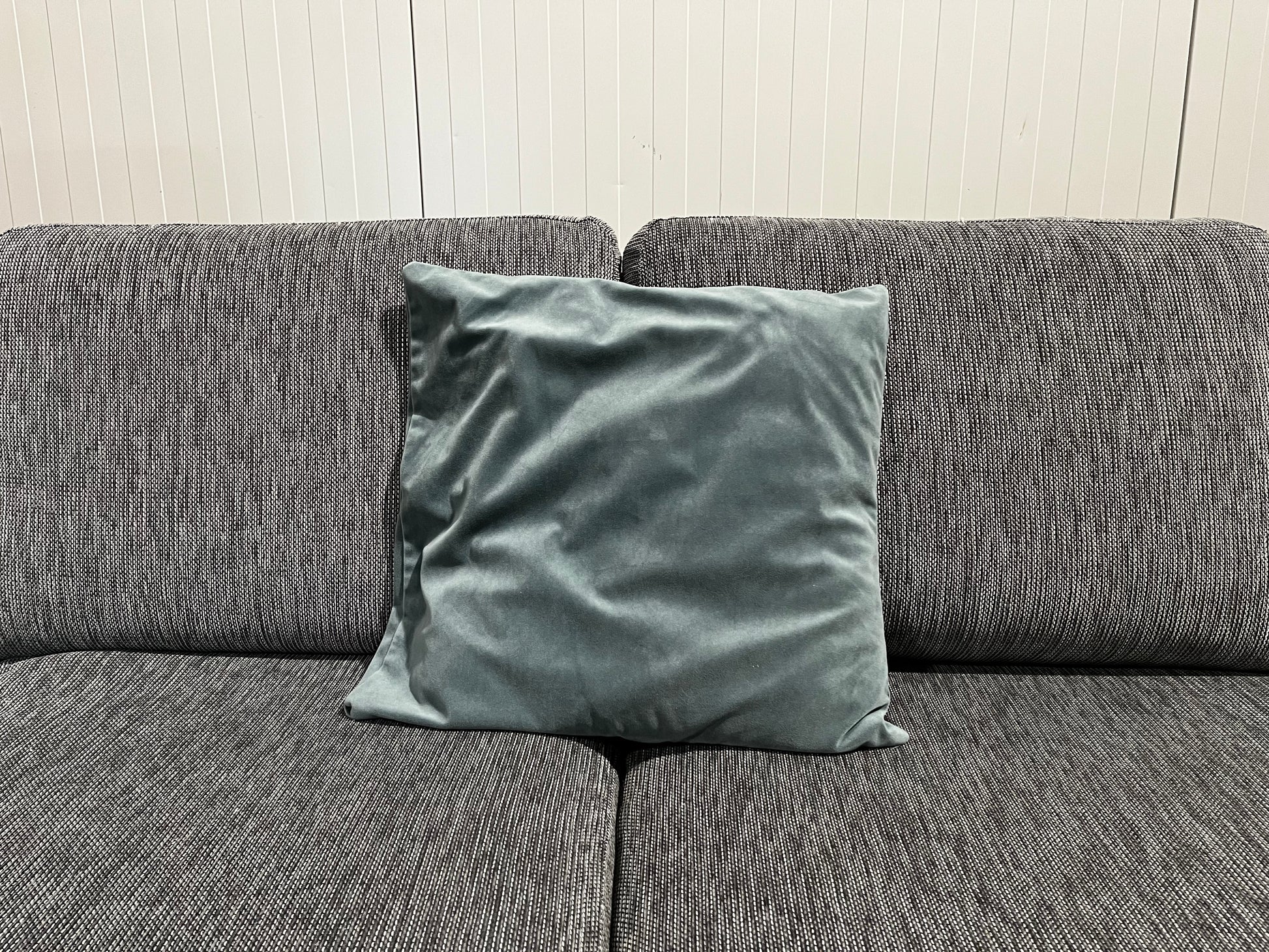 En fräsch kudde i turkos nyans som tillför energi och liv till inredningen. Den klara färgen skapar en pigg kontrast mot neutrala toner och passar lika bra i vardagsrummet som i sovrummet. En enkel detalj som ger rummet en somrig och avslappnad känsla.